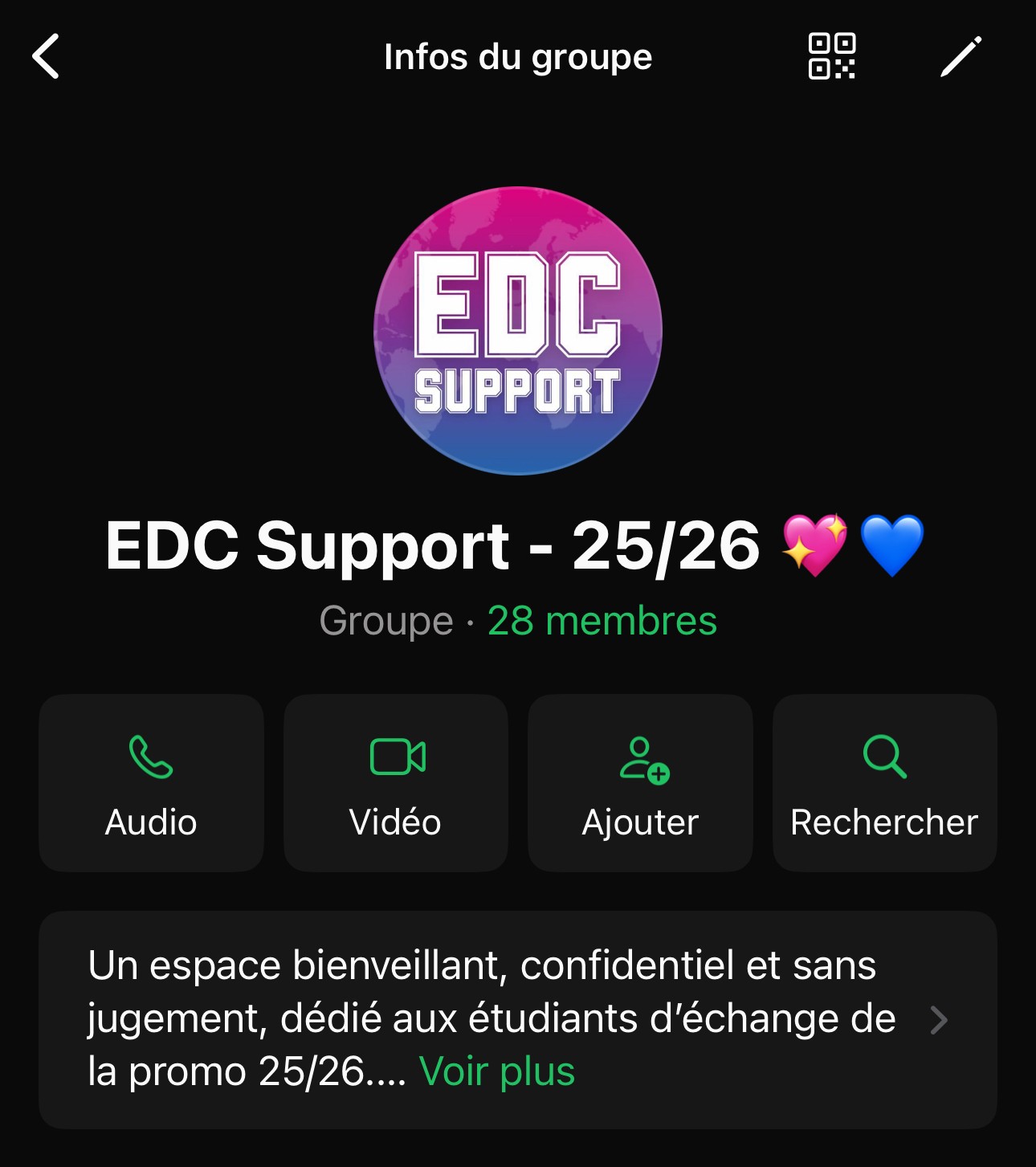 Les groupes WhatsApp EDC sont exclusivement réservés aux étudiants en échange long, actuellement à l’étranger (promo en cours)